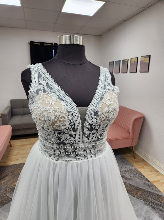 Aline Beaded Long Sleeve with Boat Neckline Wedding Dress