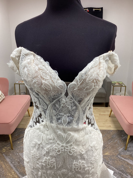 Beaded Lace Off the Shoulder Fit and Flare Wedding Dress