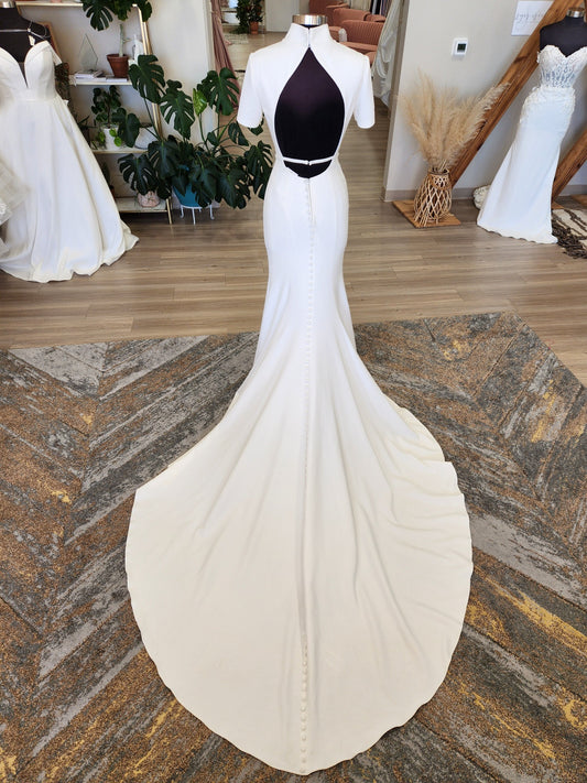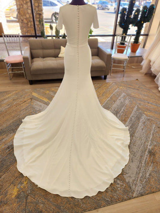 Clean and Classic Short Sleeve Open Back Wedding Dress
