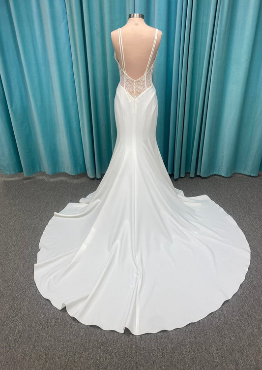 Clean and Classic V Neck Short Sleeve Wedding dress