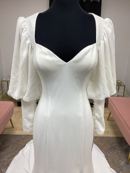 Crepe Fit and Flare Long Sleeve Wedding Dress