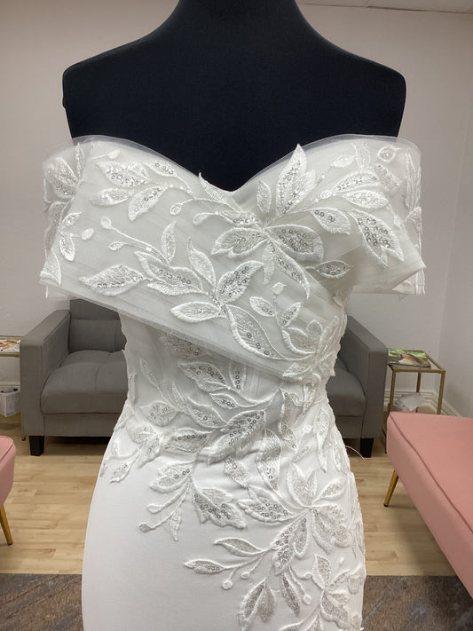 Fitted Off the Shoulder Lace and Crepe Wedding Dress